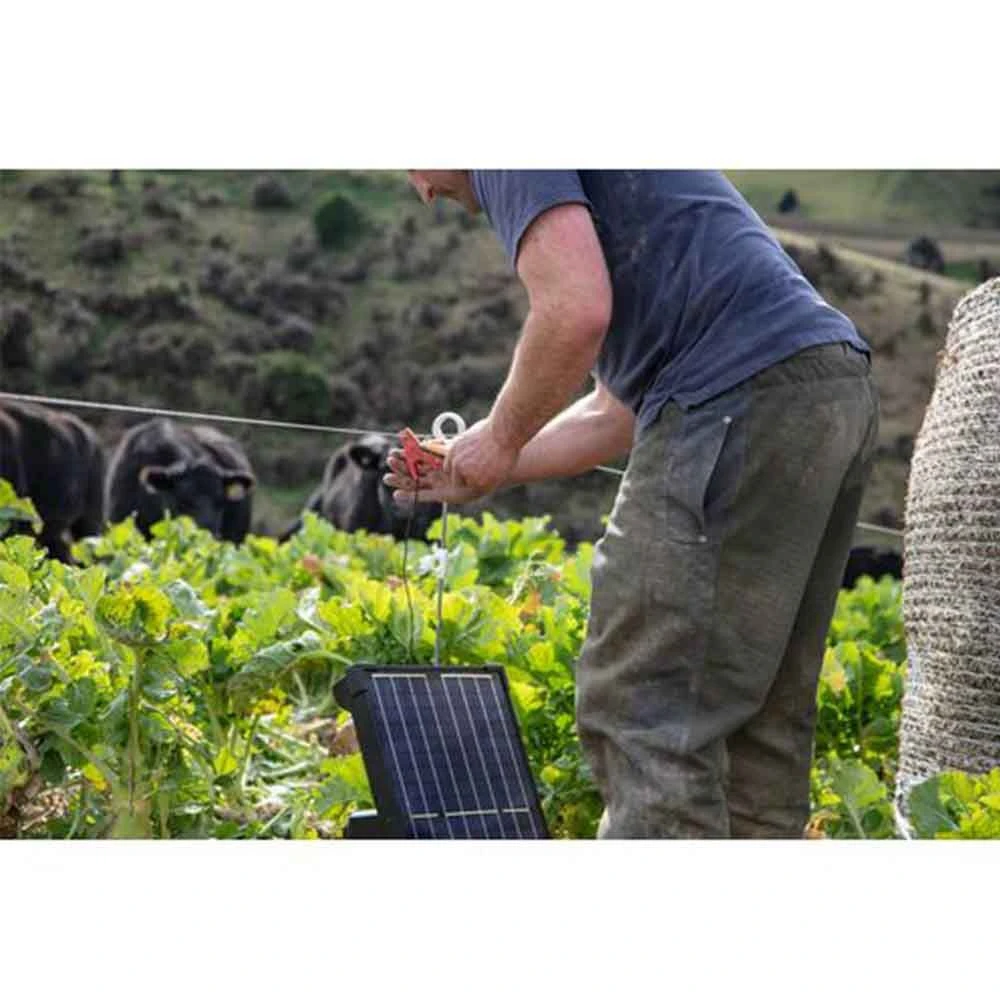 Gallagher's S200 Solar energizer is a fully portable and built to power up to 45 miles / 160 acres of clean fence and boasts several solar technology improvements like multiple power options, that make it ideal for both livestock inclusion and wildlife exclusion. The S200 will continue to work up to 1 week without the sun. The S200 has a 360 degree mounting capability, making it easy to mount onto a post that is already part of the fence line, no matter what direction the post is facing. Easily face your S200 towards the sun. Water resistant case, with convenient carry handle and built in lightning protection – designed to be left outside, rain, hail or shine. Keeps stock contained in all weather conditions.